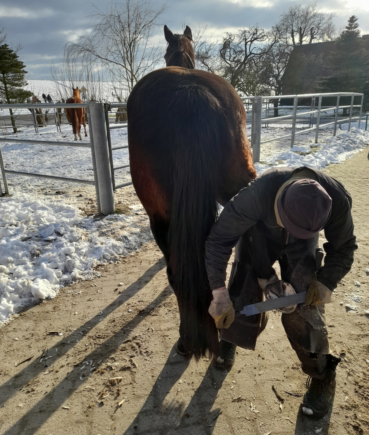 Es ist für mich wichtig das ich mir ausreichend Zeit für die Hufpflege nehme. Die dauer hängt ab vom Zustand des Hufes und die Mitarbeit des Pferdes.